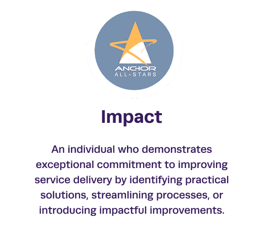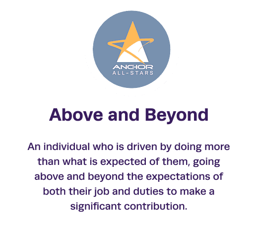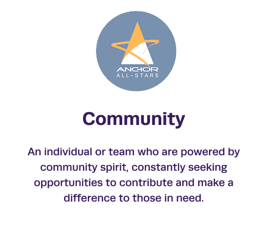 A scheme that recognises and rewards the contributions of Anchor Group Services employees who have gone above and beyond to deliver exceptional service inline with organisational values, goals and standards.